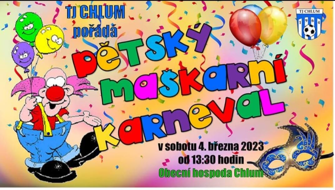 TJ Chlum pořádá dne 4.3.2023 od 13:30 Dětský karneval.