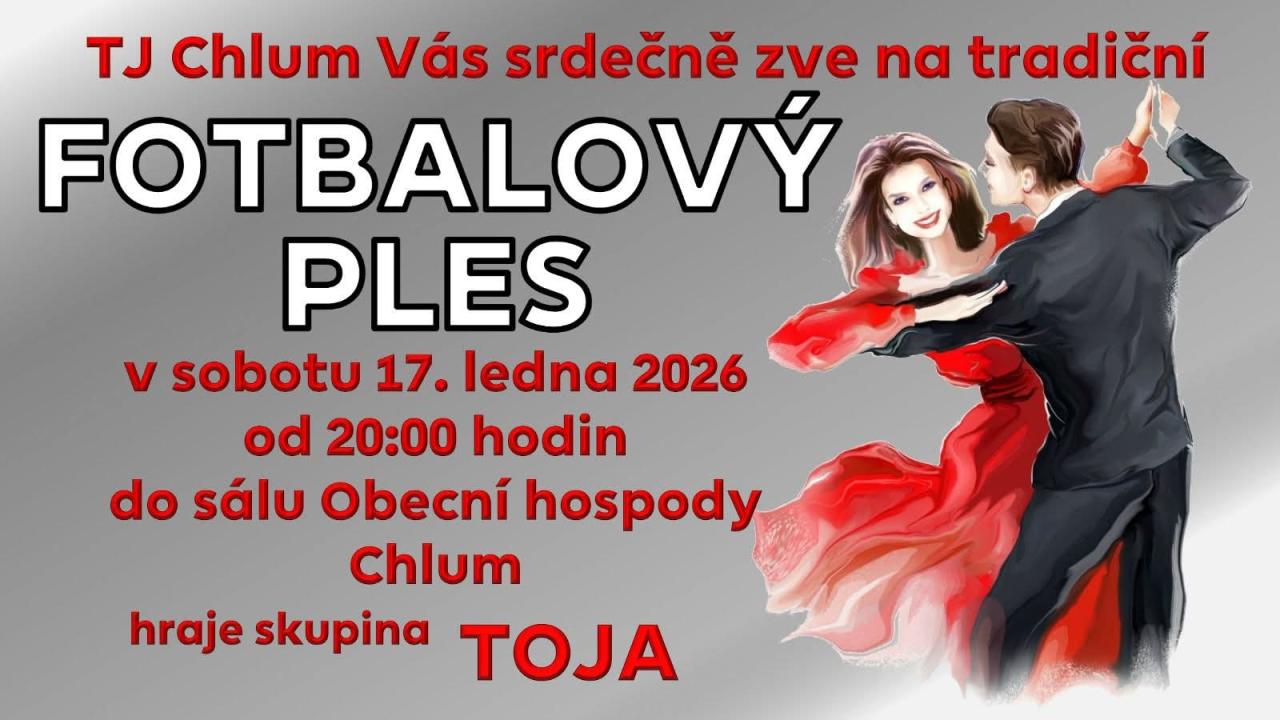 TJ Chlum zve všechny příznivce na Fotbalový ples, který se uskuteční v sobotu 17. ledna 2026 od 20:00 hodin v sále Obecní hospody Chlum. K tanci a poslechu zahraje skupina T O J A. Přijďte si užít příjemný večer plný zábavy a tance v přátelské atmosféře.