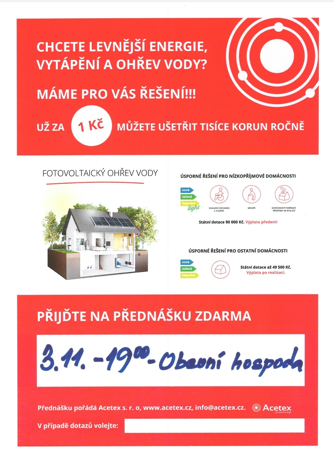 Zveme všechny občany na přednášku v obecní hospodě 3.11.2023 od 19h