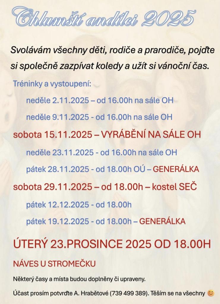 Chlumští andílci vystoupí opět v Seči a na Chlumu